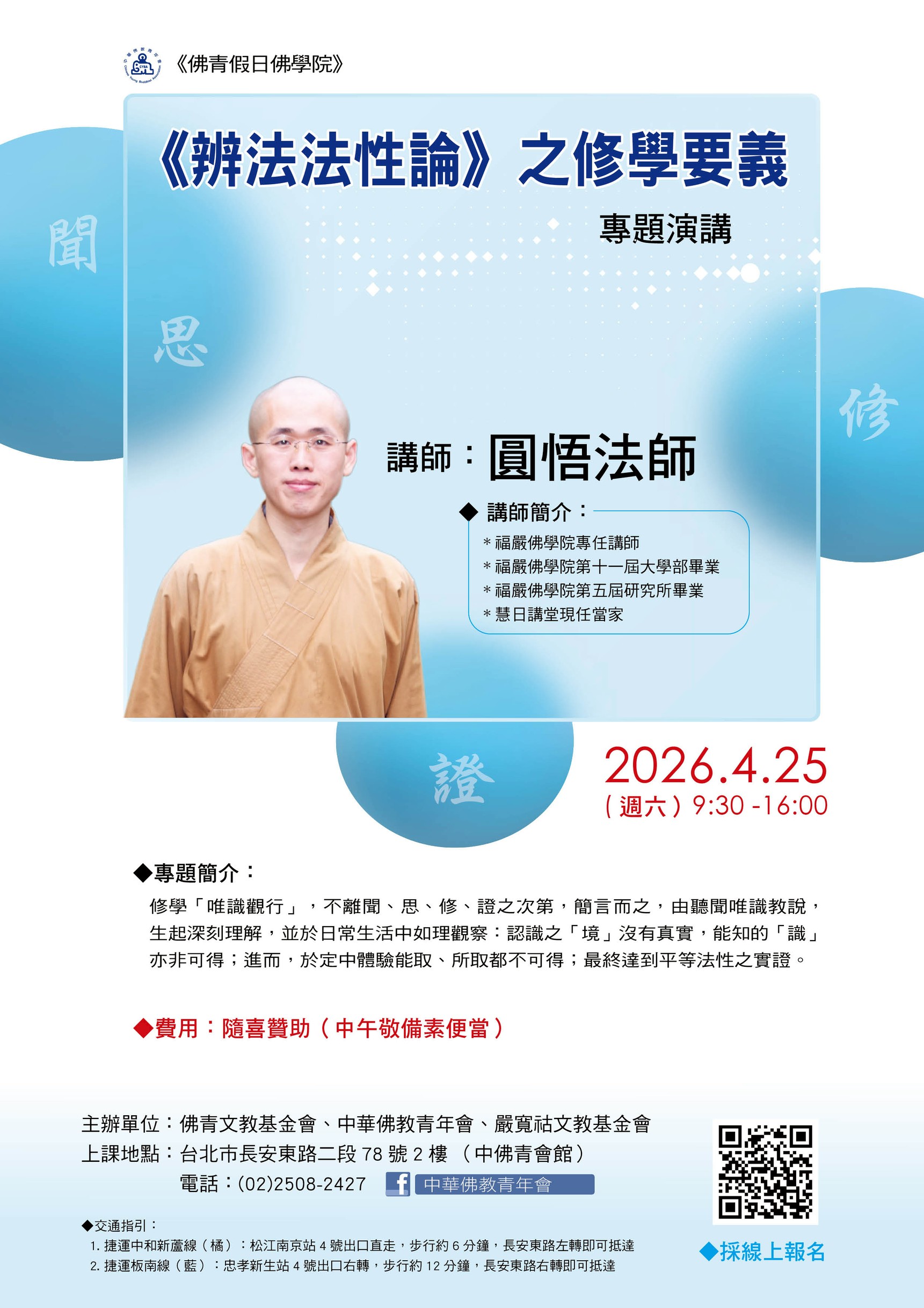 中華佛教青年會秉佛陀之教法,淨化人心,導迷轉悟,